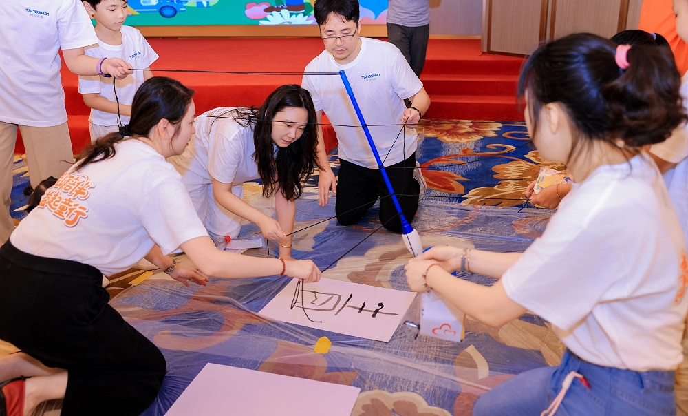 本次活动以“家庭闯关挑战”为核心形式,每组家庭手持“公益护照”和启动资金“pa视讯币”,穿梭于公益协作站、pa视讯文化课堂、全球厂区探秘等多个任务区。孩子们化身“小小科研家”“财务官”体验父母工作日常,并与父母携手完成书法创作、环保知识问答等挑战,不仅深入了解了pa视讯实业的全球战略布局、产品知识及环保理念,更在默契配合中感受协作的力量。