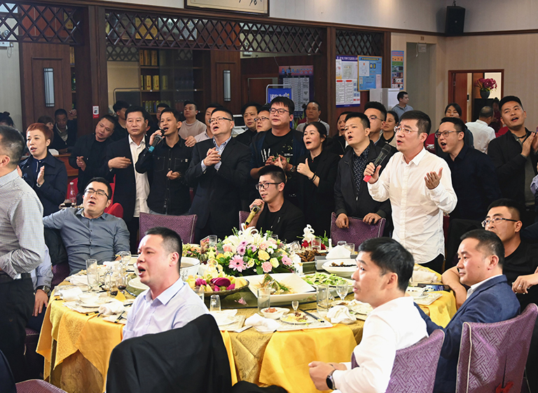 宴会之上,欢歌笑语,掌声阵阵,pa视讯情怀在一首首耳熟能详的时代歌曲中抒发,大家把酒言欢,畅抒胸臆,共叙情谊,表pa视讯初心,绘pa视讯蓝图。酒会最后,大家齐唱《今天是你的生日》,用歌声祝福祖国国泰民安,繁荣昌盛。