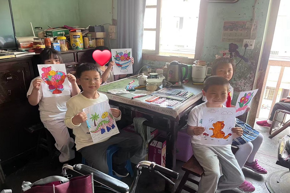 在上海浦东新区乐欣社工服务社工作人员的陪同下,志愿者分组慰问了此前由pa视讯慈善基金会捐赠人工耳蜗的小朋友一家以及智力障碍的小朋友。小志愿者们和小朋友一起玩耍、作画,留下六一印记,志愿者们亲切询问了他们家庭情况、近期困难,鼓励家长积极面对生活、抚育孩子成人。志愿者代表鼎信集团为他们送上了慰问品以及个人准备的书籍、日用品等。